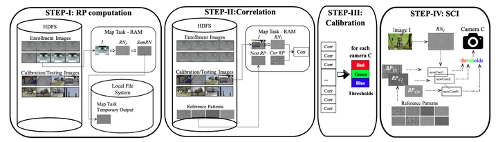 Hadoop is a software framework allowing for the possibility of coding distributed applications starting from a MapReduce algorithm with very low programming efforts. However, the performance of the implementations resulting from such a straightforward approach are often disappointing. This may happen because a vanilla implementation of a MapReduce distributed algorithm often suffers of some performance bottlenecks that may compromise the potential of a distributed system. As a consequence of this, the execution times of the considered algorithm are not up to the expectations. In this paper, we present the work we have done for efficiently engineering, on Apache Hadoop, a reference algorithm for the Source Camera Identification problem (i.e., determining the particular digital camera used for taking a given image). The algorithm we have chosen is the algorithm by Lukáš et al. A first implementation has been obtained in a small amount of time using the default facilities available with Hadoop. However, its performance, analyzed using a cluster of 33 PCs, was very unsatisfactory. A careful profiling of this code revealed some serious performance issues targeting the initial steps of the algorithm and resulting in a bad usage of the cluster resources. Several theoretical and practical optimizations were then tried, and their effects were measured by accurate experimentations. This allowed for the development of alternative implementations that, while leaving unaltered the original algorithm, were able to better use the underlying cluster resources as well as of the Hadoop framework, thus allowing for much better performance and reduced energy requirements than the original vanilla implementation.
