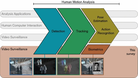 Interest in the security of individuals has increased in recent years. This increase has in turn led to much wider deployment of surveillance cameras worldwide, and consequently, automated surveillance systems research has received more attention from the scientific community than before. Concurrently, biometrics research has become more popular as well, and it is supported by the increasing number of approaches devised to address specific degradation factors of unconstrained environments. Despite these recent efforts, no automated surveillance system that performs reliable biometric recognition in such an environment has become available. Nevertheless, recent developments in human motion analysis and biometric recognition suggest that both can be combined to develop a fully automated system. As such, this paper reviews recent advances in both areas, with a special focus on surveillance scenarios. When compared to previous studies, we highlight two distinct features, i.e., (1) our emphasis is on approaches that are devised to work in unconstrained environments and surveillance scenarios; and (2) biometric recognition is the final goal of the surveillance system, as opposed to behavior analysis, anomaly detection or action recognition.